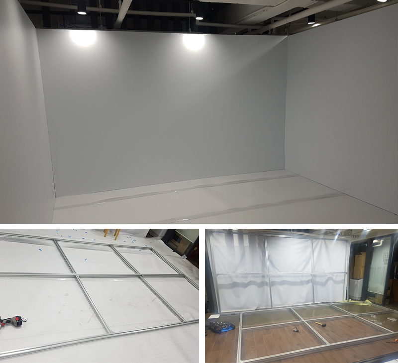 08 대형 스크린 적용 시스템 개발 내부 공간에서 VR기기를 사용하지 않고 가상의 공간을 느낌.