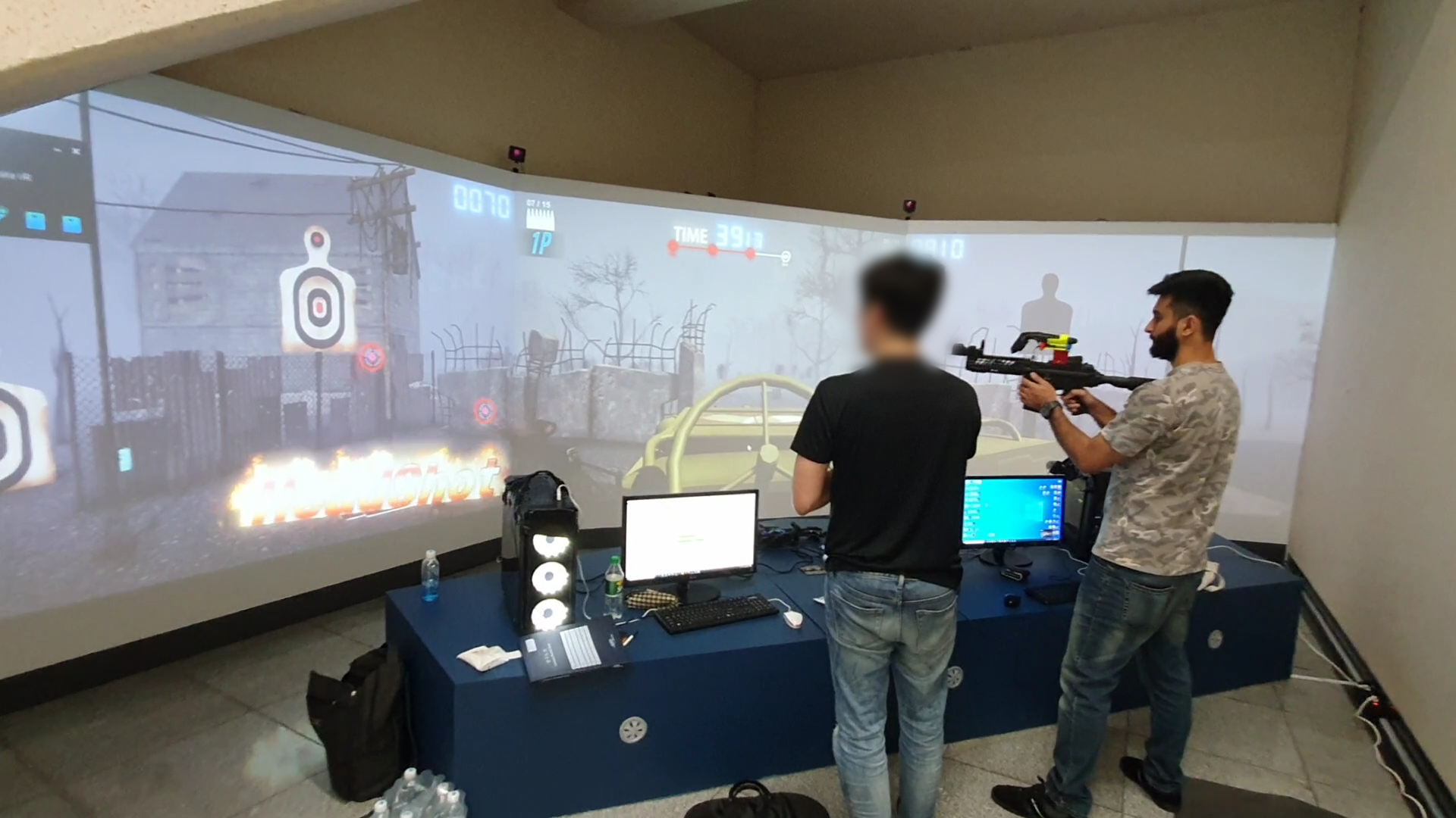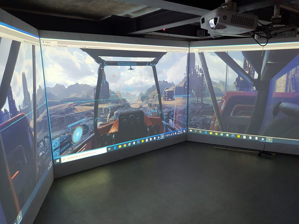 대형 3Side 스크린과 VR 장비들을 활용 하여 개발 할 수 있는 환경이 제공 되며